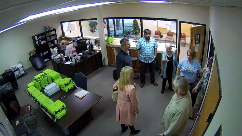 Prosecutors allege that former county Republican Party chair Cathy Latham and former elections supervisor Misty Hampton helped to facilitate employees from a firm hired by Trump attorneys to access and copy sensitive voter data and election software. Surveillance video captured Latham waving the visitors inside, and Hampton in the office as they allegedly accessed the data. Both have pleaded not guilty.